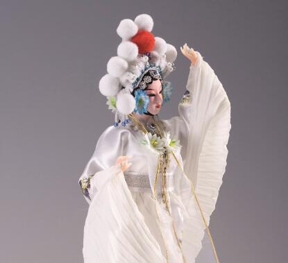 一个小小的绢人作品,集软变形技法如绢花、宫灯、绢扇等于一体,是中国近代绢塑艺术发展的历史缩影,不仅体现了中国传统艺术的特点,也凝聚了中国传统塑型艺术的精华,堪称中国的立体丹青。